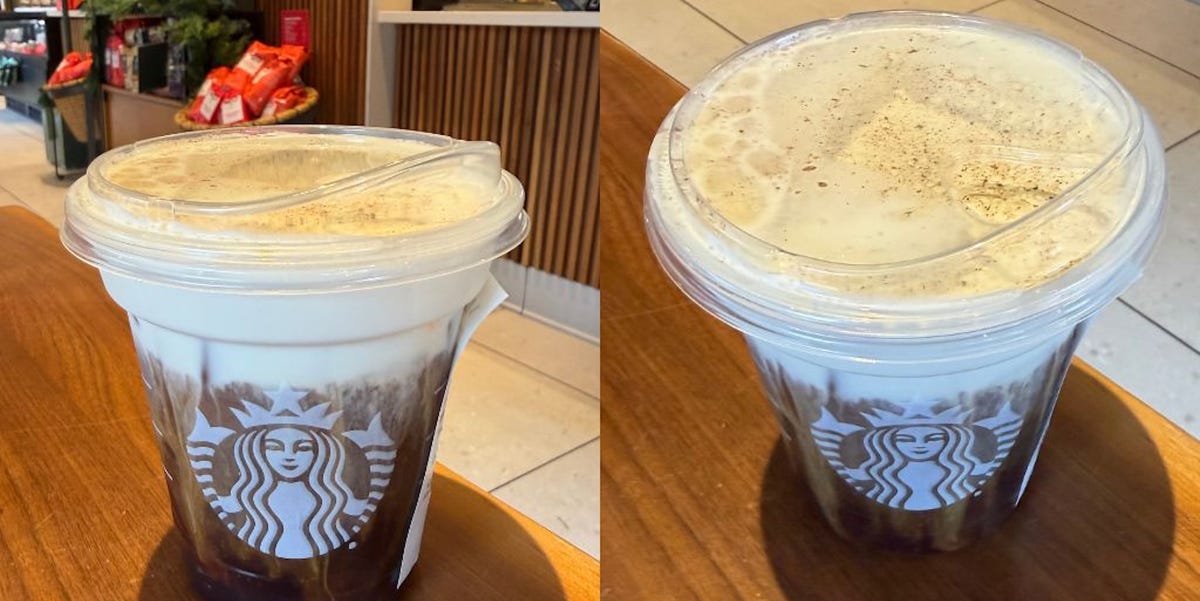 All of which apparently paid off. Starbucks not only brought back the fan-favorite bevvy after a four-year hiatus (!!!), but launched a sister sipper right along with it: the Eggnog Cold Foam. Considering the borderline-unhinged hype over the OG and my own year-round commitment to iced coffee, I knew what I had to do—and that’s run straight to my local café for a taste.