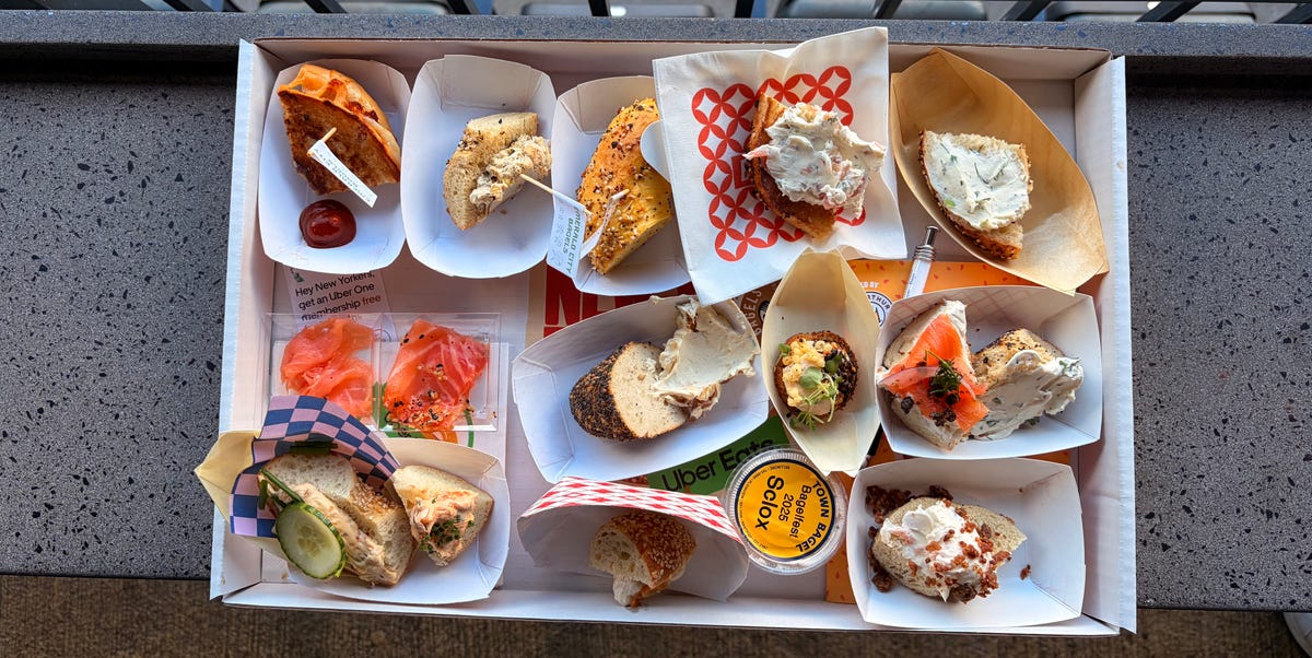 Tilly Bagel served one of the best schmears I’ve ever tasted: a caramelized onion cream cheese that was so rich and deeply sweet-savory it made me want to write a letter to its creator. Holey City Bagels went the dessert route with a banana cream cheese so light and fluffy it almost tasted like banana pudding, and then added handmade peanut butter that was slightly grainy in texture — which sounds wrong, but was actually perfect. The mix of creamy and gritty made it nearly impossible to stop eating.